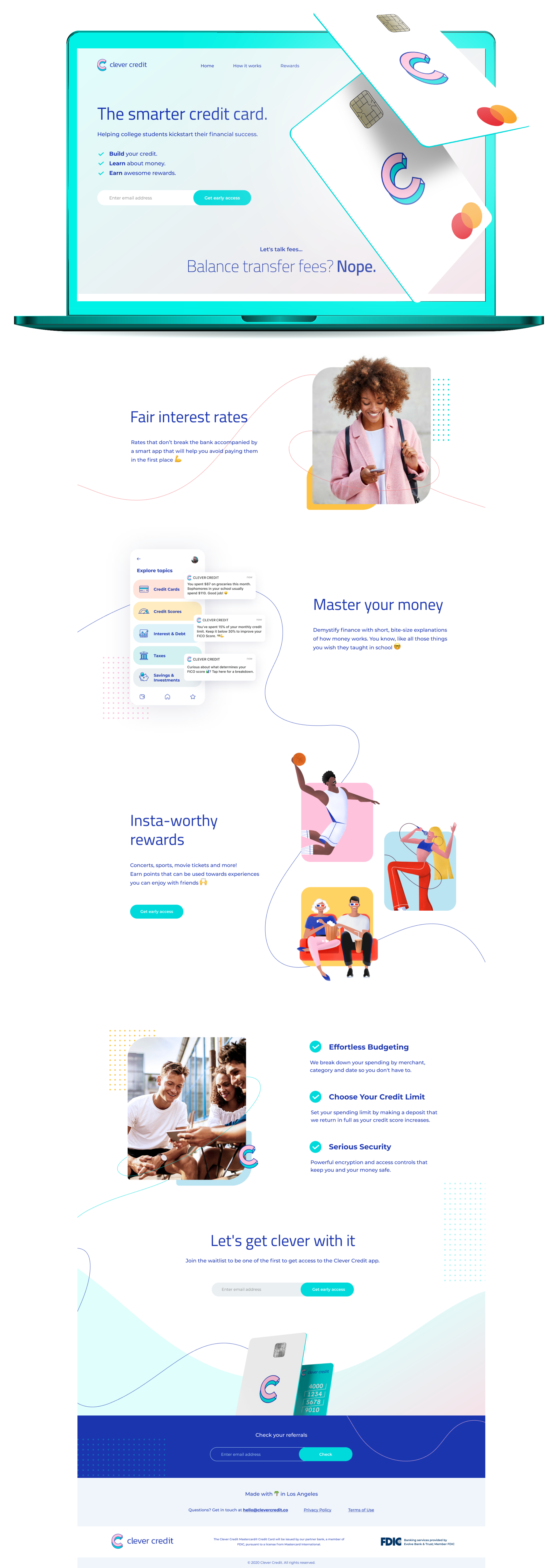 Clever Credit is a FinTech Startup founded by Fernando Gouveia in 2020 in Los Angeles, California. At first, Clever Credit was going to become a credit card for college students, with a significant gamification component. After careful thinking and conversation with investors, they pivot Clever Credit to become a credit card for consumer brands.